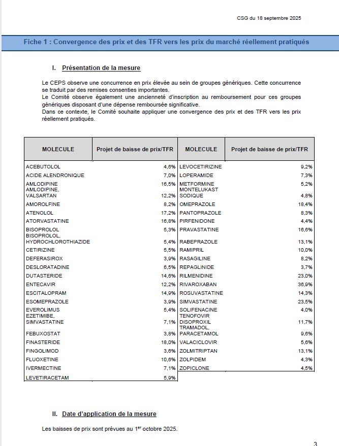 Voici la liste des médicaments qui vont être impactés par la baisse de prix.